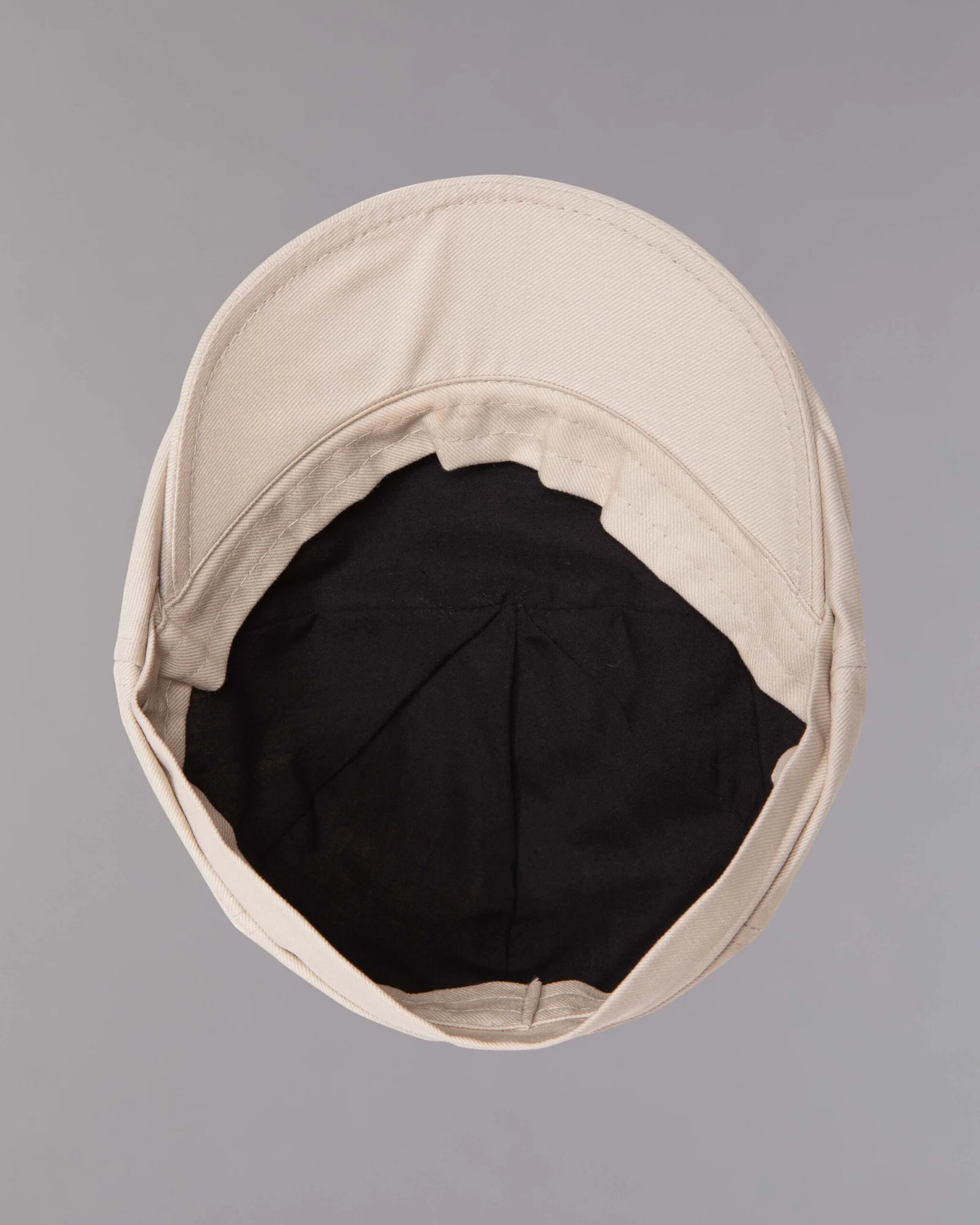 Gorra tipo boina italiana, visera corta, ajuste talla única, cortes superiores y forro interior en contraste negro