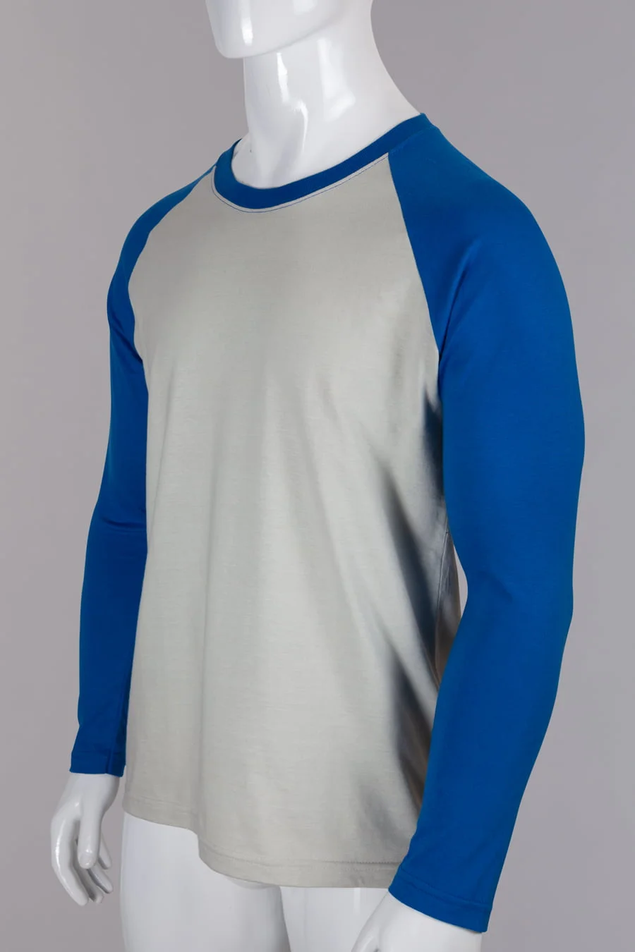Camiseta manga larga en algodón peinado preteñido para evitar la contaminación del color sobre el blanco.