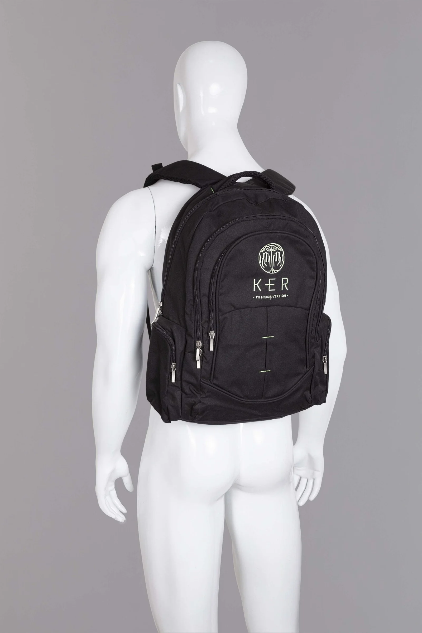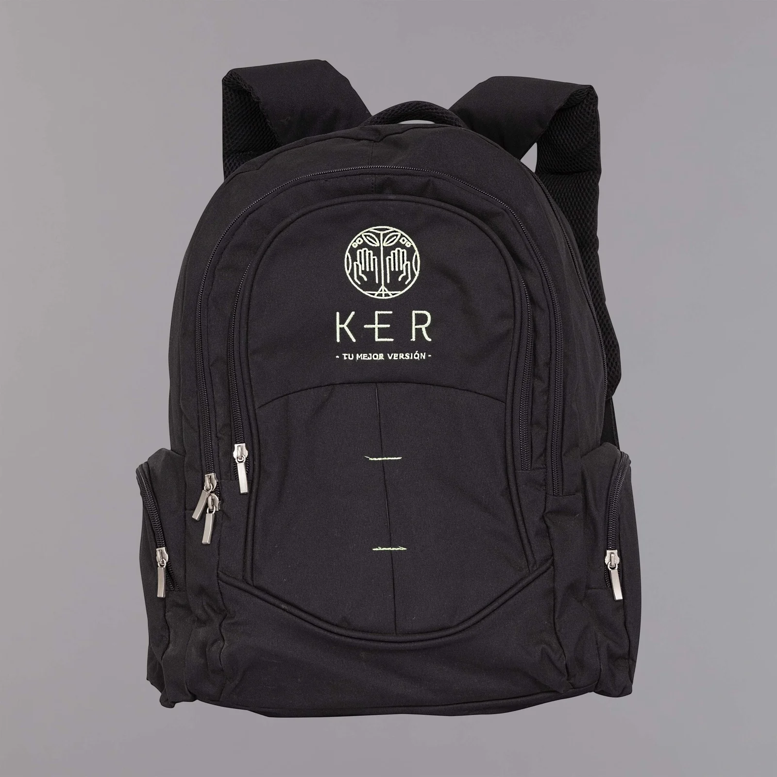 Morral con un diseño muy bonito y moderno, fabricado en lona cuatro cincuenta nacional de excelente calidad, con jaladera ancha, cargaderas ergonomicas y con malla para hacerlo mas fresco. Tiene un bolsillo principal y dos frontales con cremallera, dos bolsillos laterales con cremallera.