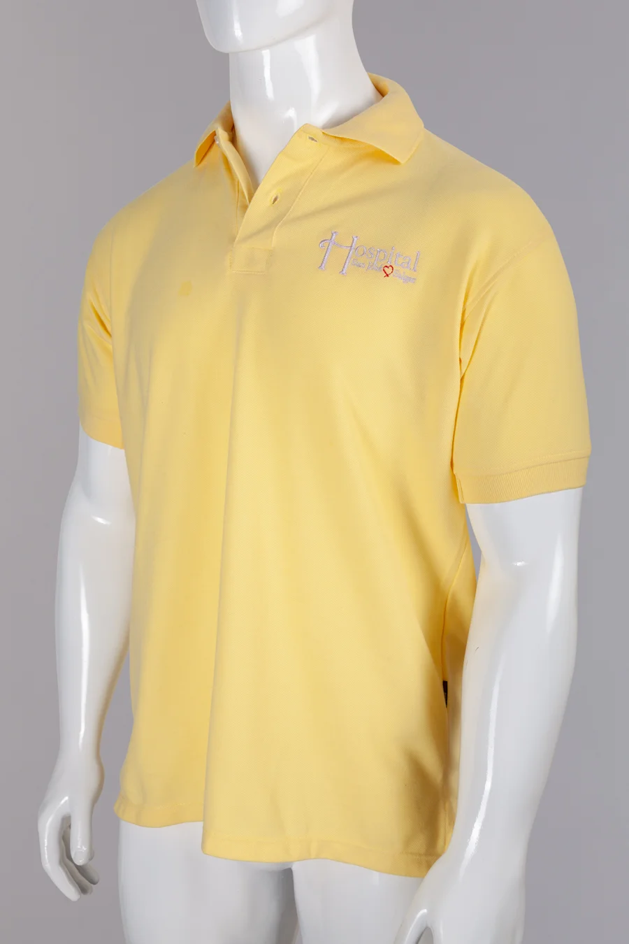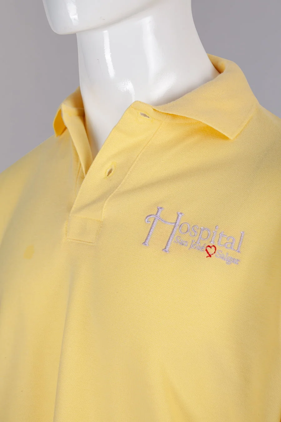 Polo en tela pique de 240 gramos, manga corta con cuello y puño tejido, composición 65% poliéster y 35% algodón